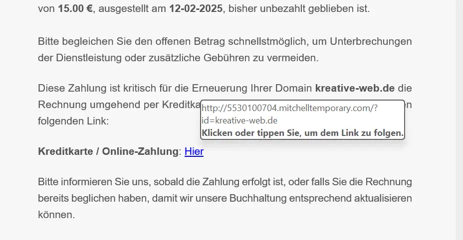- Schlechtes Deutsch: Phishing-Mails enthalten häufig Rechtschreibfehler oder unprofessionell formulierte Texte. Seriöse Unternehmen achten auf eine korrekte Rechtschreibung und Grammatik.